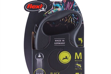 Рулетка Flexi Black Design M, до 25 кг, 5 м, лента, черный/серебро Германия доставка