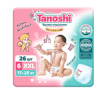 Трусики-подгузники Tanoshi для детей XXL 17-25 кг, 26 шт доставка