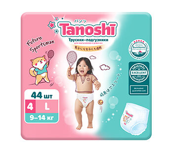Трусики-подгузники для детей Tanoshi L 9-14 кг 44 шт доставка