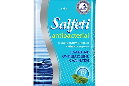 Салфетки влажные Salfeti 10 шт антибактериальные с экстрактом листьев чайного дерева доставка