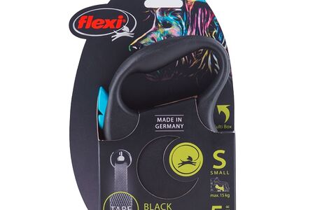 Рулетка Flexi Black Design S, до 15 кг, 5 м, лента, черный/синий Германия доставка