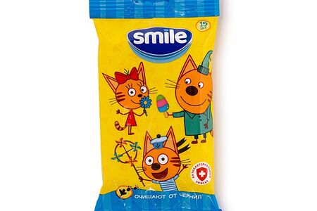 Салфетки влажные SMILE W Три Кота 15шт., Россия доставка