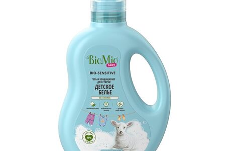 Гель-кондиционер Bio-Sensitive для стирки детского белья концентрированный экологичный, без запаха, BioMio, 900 мл, Россия доставка