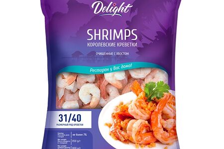 Креветки ваннамей Delight варено-мороженые очищенные без головы с хвостом 31/40 850г, Вьетнам доставка