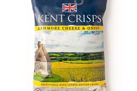 Чипсы картофельные Kent Crisps с сыром Ашмор и луком 150г, Великобритания доставка
