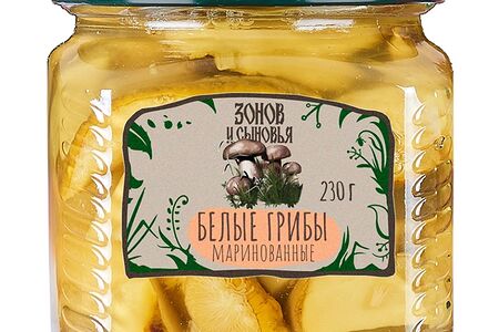 Грибы "Зонов и Сыновья" белые маринованные 230г, Россия доставка