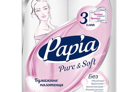 Бумажные полотенца Papia Pure&Soft 3 слоя 2 рулона доставка