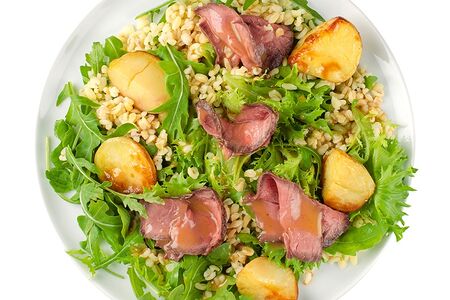 Салат фреш с ростбифом, руколой и бейби картофелем с горчично-медовой заправкой Уже Готово доставка