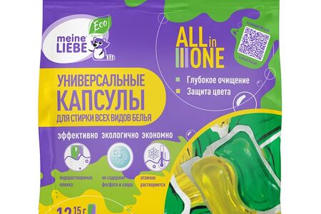 Капсулы Meine Liebe для стирки цветного и белого белья универсальные экологичные All in 1, 15 г, 12шт., Россия доставка