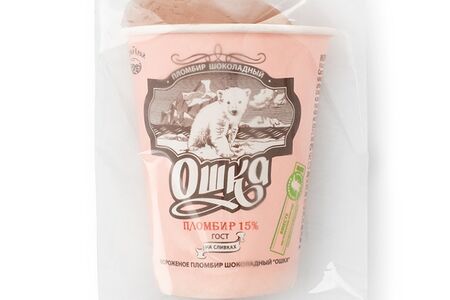 Мороженое пломбир шоколадный Ошка 80г в бумажном стакане, Россия доставка