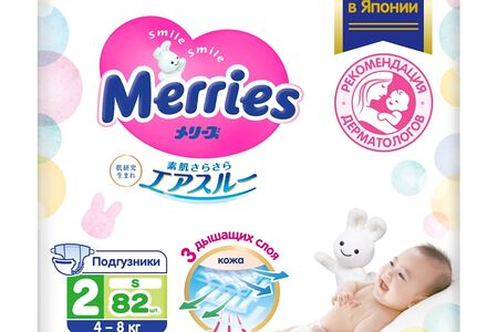 Подгузники Merries S 4-8 кг 82 шт доставка