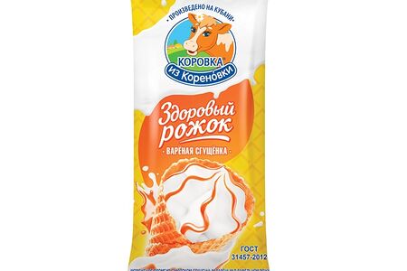 Мороженое Коровка из Кореновки пломбир с мягкой карамелью в вафельном рожке доставка