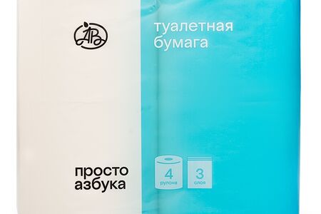 Туалетная бумага Просто Азбука 3 слоя, 4 рулона, Россия доставка