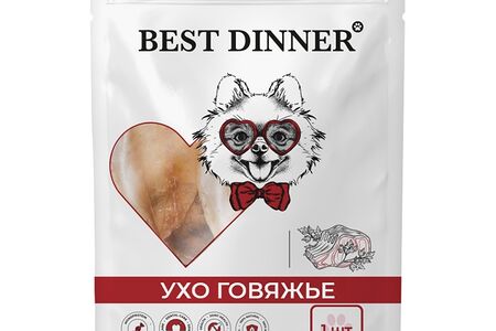 Лакомство для собак ухо говяжье сухое, Best Dinner, 1 шт., Россия доставка