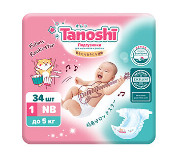 Подгузники для новорождённых размер NB до 5 кг, Tanoshi, 34 шт доставка