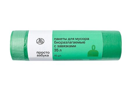 Мешки для мусора биоразлагаемые с завязками 35 л, «Просто Азбука», 15 шт., Россия доставка