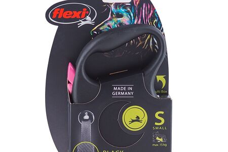 Рулетка Flexi Black Design S, до 15 кг, 5 м, лента, черный/розовый Германия доставка