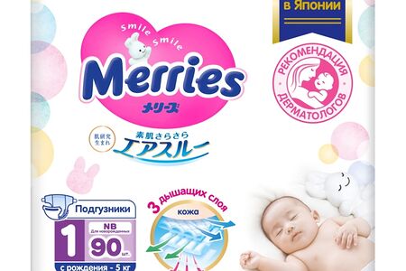 Подгузники Air Through Merries NB (с рождения до 5 кг), 90 шт. доставка