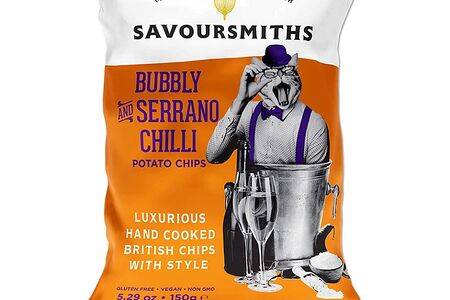 Чипсы картофельные со вкусом просекко и перца чили серрано (без глютена), Savoursmiths, 150 г, Великобритания доставка