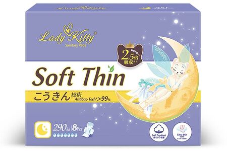 Прокладки Lady kitty ультратонкие ночные с крылышками, 290мм, 8шт., Китай доставка