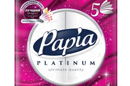 Туалетная бумага PAPIA PURE&SOFT Белая 5 слоёв 4 рулона Россия доставка