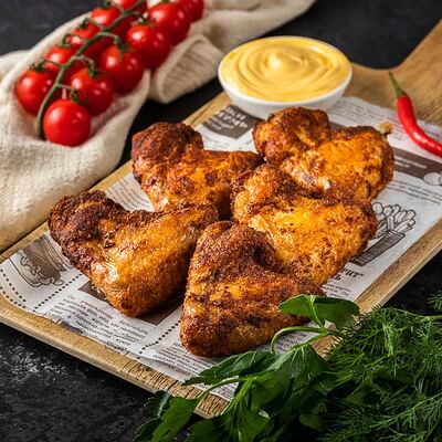 Маринованная по собственному рецепту курица, легендарный барбекю соус, огурцы слабосоленые, помидоры, капуста, лук фри, бекон, пекинская капуста