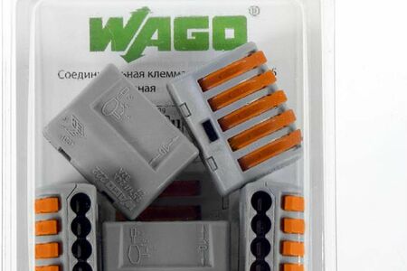 "Клеммы универсальные пятипроводные представляют собой многоразовый механизм с удобным плоско-пружинным зажимом. Предназначены для соединения 5 проводников тонкого сечения. Изделие выполнено из прочного качественного материала, отличается хорошими техническими характеристиками. В комплекте представлено 5 клемм. Клеммы предназначены для одножильных, многожильных и тонких многожильных проводников. Благодаря возможности подсоединения проводников сечением 0,08-2,5 кв.мм/4 кв.мм они могут использоваться для подсоединения осветительных приборов, жалюзи, систем управления дверями и воротами, внутренних телефонов, насосов, и т.д. Не предназначены для монтажа проводов с алюминиевыми жилами, а также не предназначены для проведения работ при открытом монтаже на улице, так как не обладают достаточной защитой от воды (IP20). При монтаже на улице клеммы должны быть защищены монтажными коробками, электрическими щитками, корпусами приборов или аналогичными устройствами с соответствующим классом защиты. Особенности: зажим проводов в клемме осуществляется при помощи оранжевых рычагов, наличие специального паза в корпусе клеммы для размещения рычага в закрытом положении надежно предотвращает случайное отсоединение проводника, возможность измерения электрических параметров цепи без разбора и нарушения изоляции соединения"