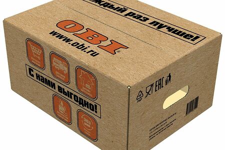 Коробка упаковочная OBI представляет собой изделие из гофрированного картона с прорубными ручками с обеих сторон.