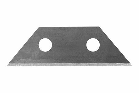 Применяются в качестве сменного рабочего элемента для ножей, использующих лезвия трапециевидной формы. Изготовлены из легированной стали, имеют по две режущих кромки. Поставляются в пластиковом пенале, обеспечивающем удобное хранение и быструю безопасную замену. Используются с ножами арт. 2701005