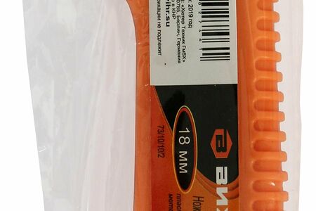 Нож Вихрь имеет пластиковый корпус и оснащен металлической направляющей лезвия, что повышает прочность ножа при давлении на него во время резки.ширина: 18 мм, корпус: пластик, направляющая: металл