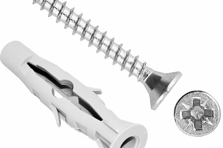 Крепление легконагруженных конструкций (деревянные направляющие, металлические полки и кронштейны, карнизы и элементы декора и пр.) к тонкостенным листовым основаниям.Конструкция дюбеля обеспечивает максимально высокую несущую способность, сопоставимую с металлическими дюбелями (анкерами) для листовых материалов. Установка осуществляется в предварительно просверленное отверстие. Наличие острых рёбер жёсткости предотвращает проворачивание дюбеля внутри стенки основания. Плоский бортик дюбеля не продавливает мягкий материал основания при установке. Дюбель держится в тонкой стенке основания за счет образования внешнего упора, получаемого при вкручивании шурупа. Чтобы дюбель мог полностью раскрыться, необходимо осуществить полную затяжку шурупа к поверхности закрепляемой детали.