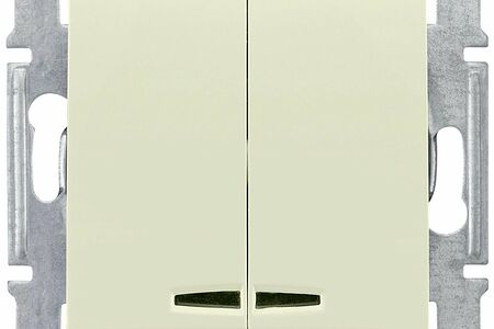 Клавишный выключатель в бежевом цвете подойдет для установки как в жилых, так и в коммерческих помещениях. Представляет собой изделие прямоугольной формы с двумя клавишами и подсветкой. Монтаж скрытого типа обеспечивает модели эстетически привлекательный вид. Выключатель отличается компактностью, прост в эксплуатации.