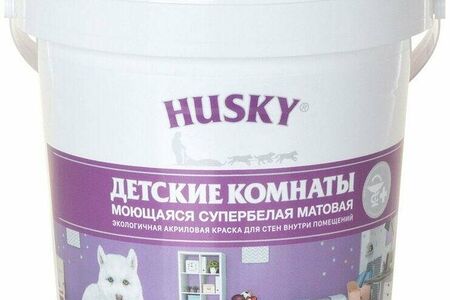 Краска HUSKY для детской комнаты - экологичная акриловая краска на водной основе, подходящая для отделки стен и потолков. Покрытие устойчиво к внешним воздействиям, допускает мытье водой и неабразивными моющими средствами.