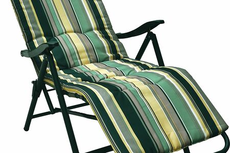Кресло-шезлонг складное зеленого цвета, со стальным каркасом, обитое, сиденье и спинка из текстильного материала (полиэстер), размеры 80х62х106 cm
