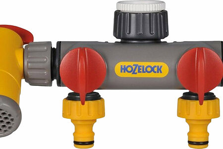 Распределитель Hozelock Flowmax Two Way позволяет подключать два поливочных устройства. Кроме того, у него есть третий постоянно доступный выход, что позволяет наполнить ведро или лейку. Разъем подходит для большинства садовых кранов и поставляется с: 21мм (1/2" BSP), 26.5мм (3/4" BSP) и 33.3 мм (1 ") BSP адаптеров. Он идеально подходит для использования с автоматическими системами полива.
