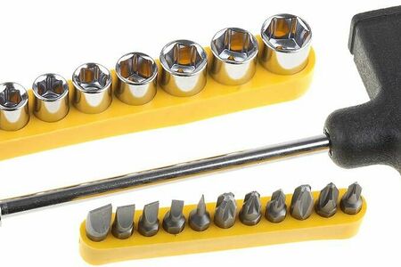 Отвертка STAYER с T- образной рукояткой позволяет максимально эффективно передать крутящий момент от руки к профилю крепежа.- Количество предметов: 21 шт- Материал бит: Cr- V - Кейс: нет - Хвостовик бит: 1/4"