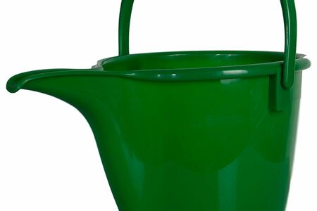 Лейка-ведро садовая с широкой горловиной, ручкой в форме дужки и узким длинным носиком для слива жидкости используется для ухода за растениями и других хозяйственных нужд.