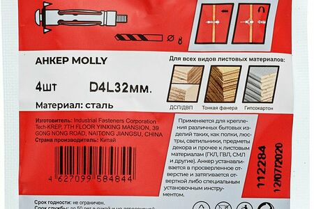 Анкер (дюбель) Молли М4х32 (4 шт) Tech-Krep доставка