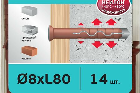 Дюбель-гвоздь усиленный нейлоновый MULTI Pro UK потайной бортик 8x80 мм 14 шт доставка