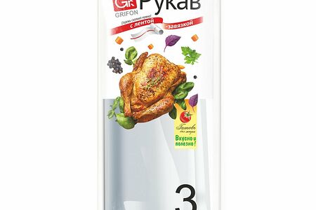 Рукав GRIFON изготовлен из термостойкой пленки, неотъемлемой частью которой является лента-завязка, с её помощью фиксируют края рукава перед приготовлением. В новинке от GRIFON эта завязка размещена на самом рукаве. Не нужно искать клипсы, достаточно отделить ленту и использовать по назначению.Готовить в рукаве можно не только в духовке (газовой, электрической), но и микроволновой печи и мультиварке. Так же данная пленка может быть использована для хранения продуктов в морозилке.