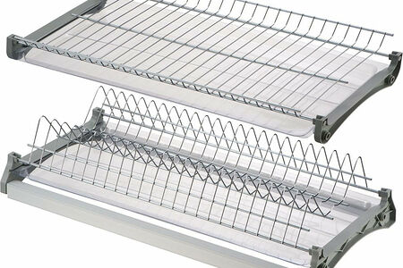 Двухуровневая встраиваемая сушилка для посуды. Предназначена для монтажа в верхний шкафчик кухонного гарнитура. В комплект входят: держатель тарелок и полка для сушки чашек и бокалов, два поддона-накопителя для стекающей воды, крепежные элементы и два алюминиевых профиля, позволяющих осуществлять монтаж изделия в шкафчики без дна, сохраняя жесткость конструкции.