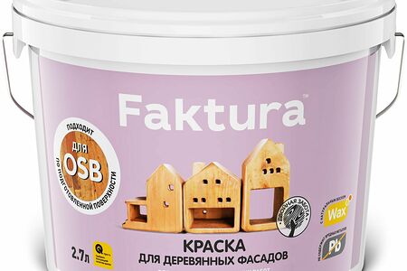 Краска акриловая FAKTURA предназначена для окраски деревянных фасадов и интерьеров снаружи и внутри помещений. Натуральный воск надёжно защищает деревянную поверхность от дождя и проникновения влаги. Антисептические добавки предотвращают образование и развитие синевы, плесени и других микроорганизмов. Эластичное паропроницаемое покрытие не теряет свойств при сезонном изменении древесины и позволяет дереву "дышать", бережно оберегая его от перепадов температур, солнечного излучения и других атмосферных воздействий.