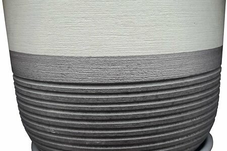 Горшок Маршмеллоу выполнен из керамики, имеет приятную рельефную поверхность и стильный принт в полоску. Модель дополнена поддоном в цвет изделия.