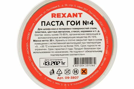 Паста ГОИ № 4 (аббревиатура от Государственный Оптический Институт) - это абразивный материал, применяемый для шлифовки и полировки поверхностей стали, пластика, цветных металлов, стекол, керамики и т. д.