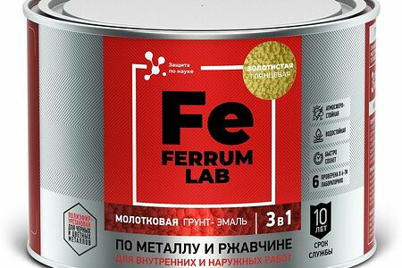 Грунт-эмаль FERRUM LAB по ржавчине 3 в 1 молотковая золотистая, банка 0,4 л доставка