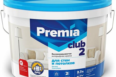 PREMIA CLUB 2 не выделяет вредных веществ в процессе применения, высыхания и эксплуатации, поэтому вы можете использовать её для окраски жилых помещений, детских, лечебных и спортивных учреждений, а так же офисов и банкетных залов.