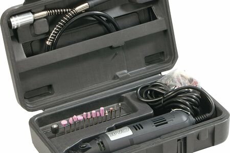Набор для изготовления и гравировки состоит из 41 детали и представляет собой универсальный прецизионный инструмент для сверления, фрезерования, гравировки, полировки, шлифования и резки. Он оснащен мощностью 135 Вт. Скорость холостого хода от 10 000 об / мин до 32 000 об / мин (оборотов), длина кабеля 2 м.