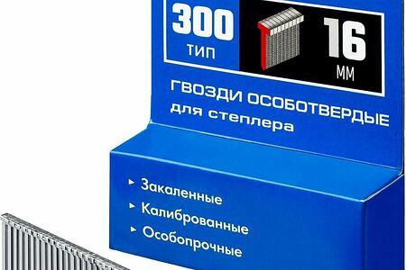 Обеспечивают наивысшее качество выполнения работ при крепления различных материалов к поверхности из дерева, ДВП, пластика т.п.- Тип скобы и возможные аналоги других производителей: 300 (E I J I 47) - Материал: Закаленная оцинкованная проволока - Диаметр: 1,25 мм- Высота ножек: 16 мм- Заточка: Да - Количество: 1000 шт.- Характеристика материала: Особотвердая сталь