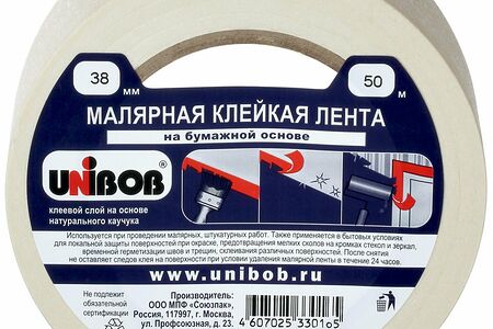 Малярная лента Unibob широко используется при проведении малярных, штукатурных и строительный работ или в быту. Данное изделие защищает различные поверхности от случайных сколов, попадания краски или штукатурки, а также обеспечивает четкие границы при окрашивании.