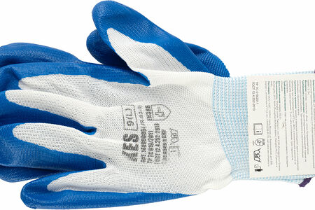 Сплошной нитрильный облив исключает проскальзывание предметов, обеспечивает защиту от проколов и истирания